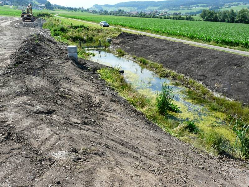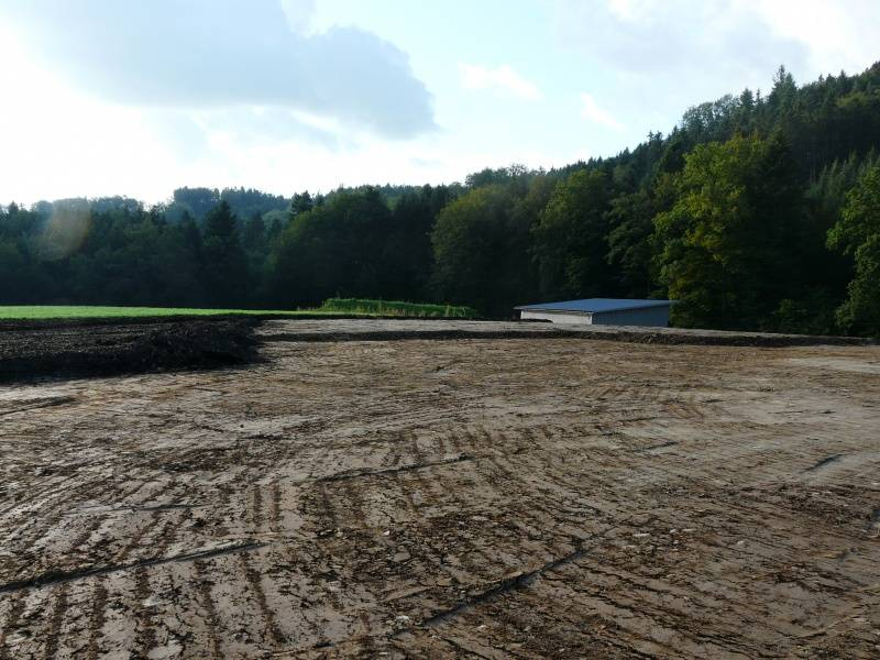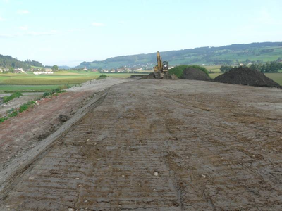 Anschliessend an diese Erdarbeiten werden die Flächen mit einer Grasmischung, die gut durchwurzelt ist, angesät. Nach einem ersten Säuberungsschnitt kann die frisch rekultivierte Fläche der Landwirtschaft zur weiteren schonenden Bewirtschaftung übergeben werden. Nach vier bis fünf Jahren, wenn sich die Bodenstruktur soweit erholt hat, kann das Wiesland wieder wie vorher bewirtschaftet werden.