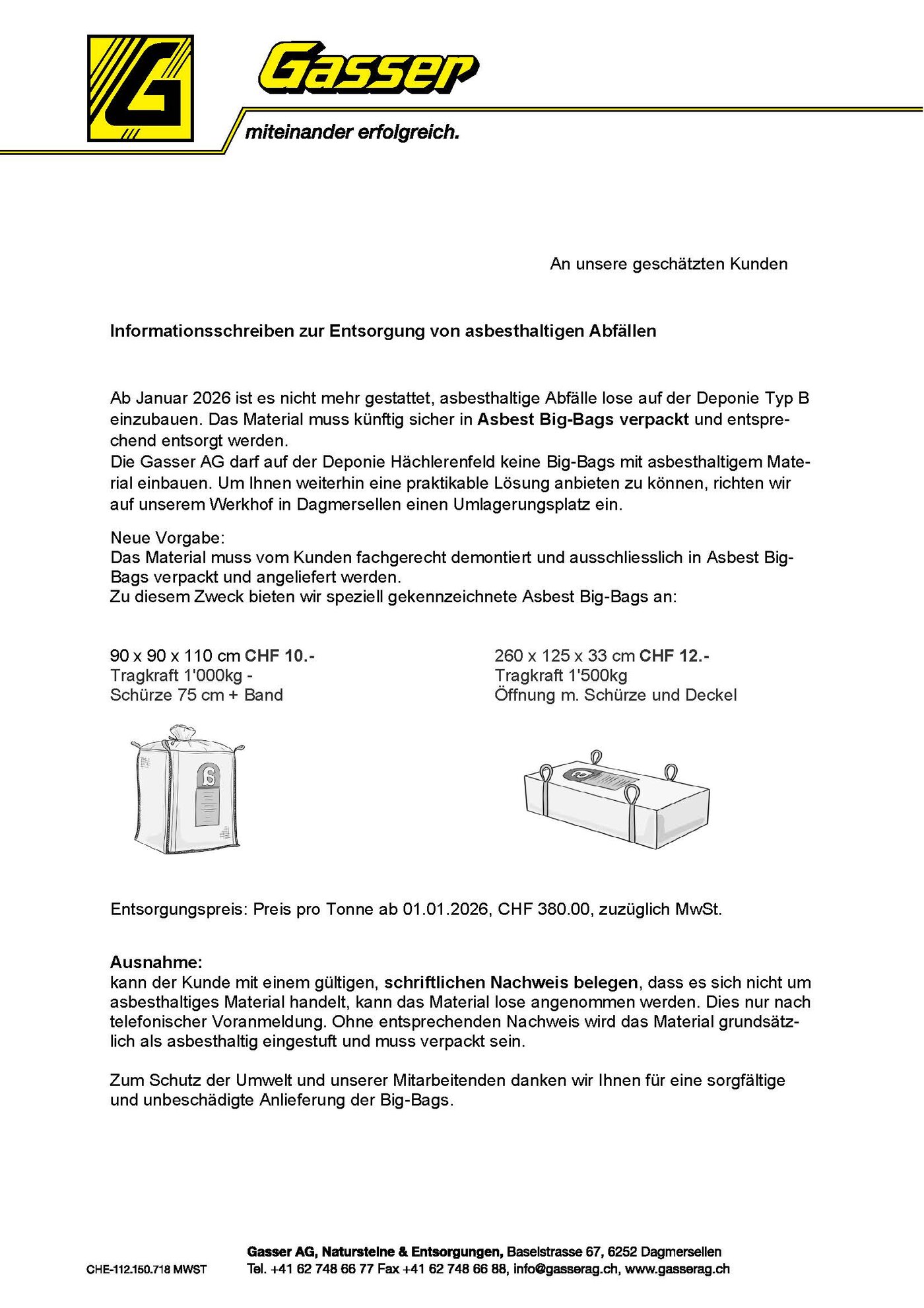 Informationsschreiben zur Entsorgung von asbesthaltigen Abfällen